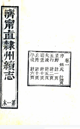 书名: [咸丰]济宁直隶州续志四卷(清)盧朝安纂修 清咸豐九年(1859)刻本