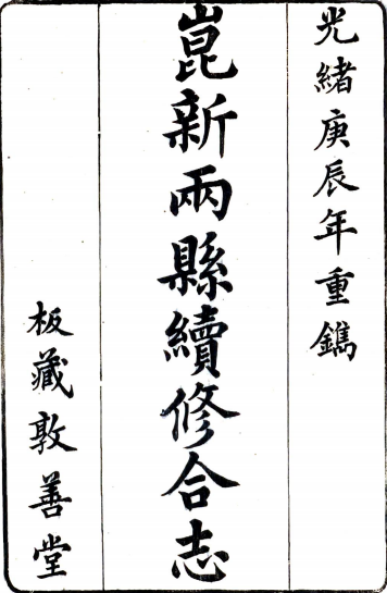 书名: [光绪]昆新两县续补合志:52卷首 1卷末 1卷 (清)金吳瀾修 清光緒六年[1880] 刻本