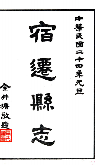 书名: [民国]宿迁县志二十卷 嚴型[修]|馮煦[纂] 民國十三年修二十四年鉛印本
