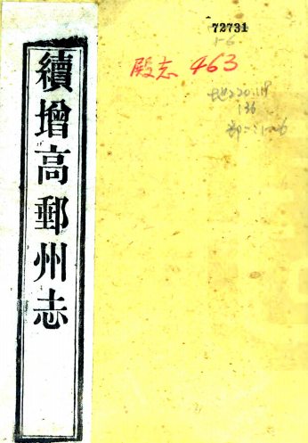 书名: [道光]续增高邮州志不分卷(清)張用熙 (清)左輝春等總纂 清光緒九年(1883)刻本