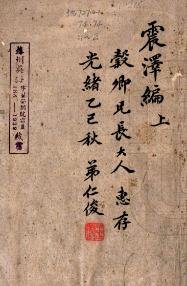 书名: 震泽编八卷 明蔡昇撰明王鏊重撰 明弘治十八年林世遠刻本