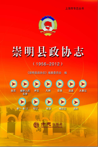 · 崇明县政协志 1956-2012 PDF电子版详细记录了本地的历史、地理、风俗、人物、文教、物产等是广大青少年、海外游子了解家乡、热爱家乡、传承历史文明、建设美好家乡的重要载体和平台的专书。