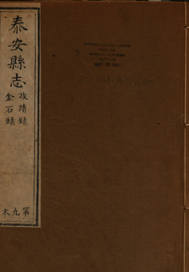 [道光]泰安县志十二卷首一卷末一卷(清)徐宗幹修 (清)蔣大慶纂清道光八年(1828)刻本